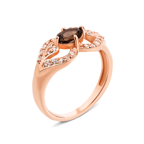 Кольцо из красного золота 585 пробы с раухтопазом и фианитами