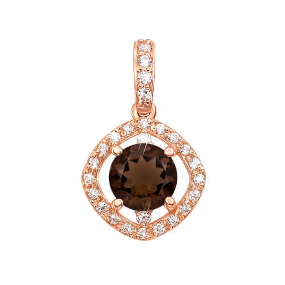 Кольцо из красного золота 585 пробы с раухтопазом и фианитами.
