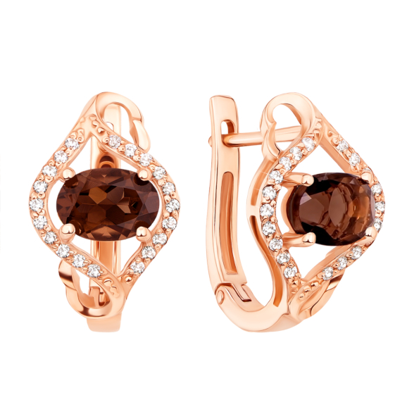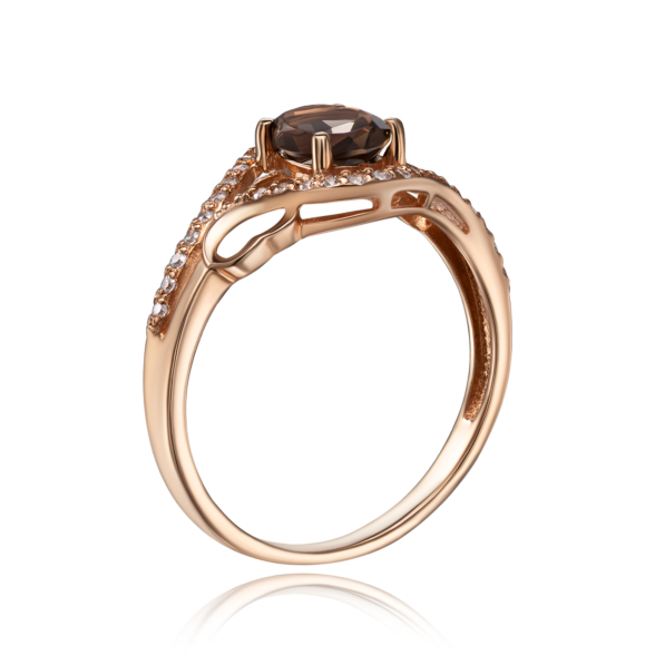 Кольцо из красного золота 585 пробы с раухтопазом и фианитами