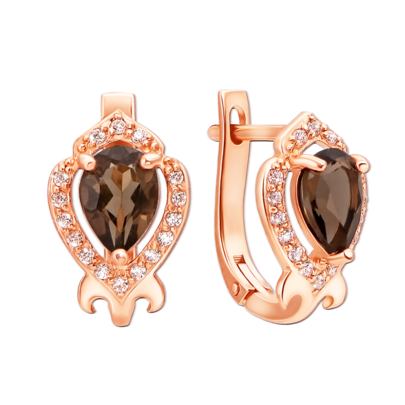 Кольцо из красного золота 585 пробы с дымчатым кварцом (раухтопазом) сделает образ каждой женщины поистине королевским. Раухтопаз овальной огранки в крапановой закрепке в центре золотого сердца, усыпанного фианитами, станет романтичным акцентом в образе современной женщины.