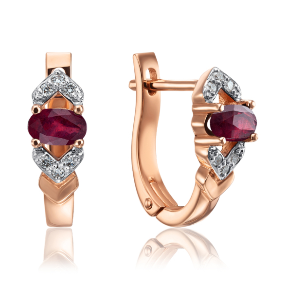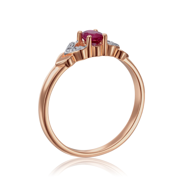 Кольцо из красного золота 585 пробы с рубином и бриллиантами