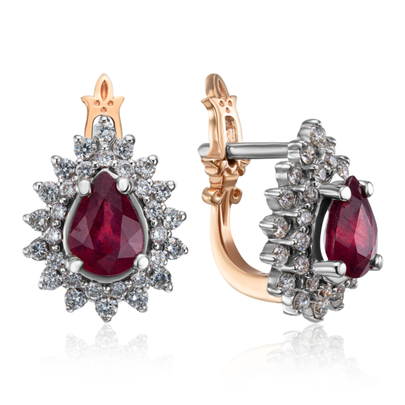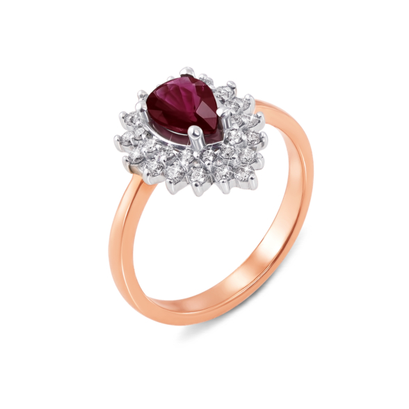 Кольцо из красного золота 585 пробы с рубином и бриллиантами