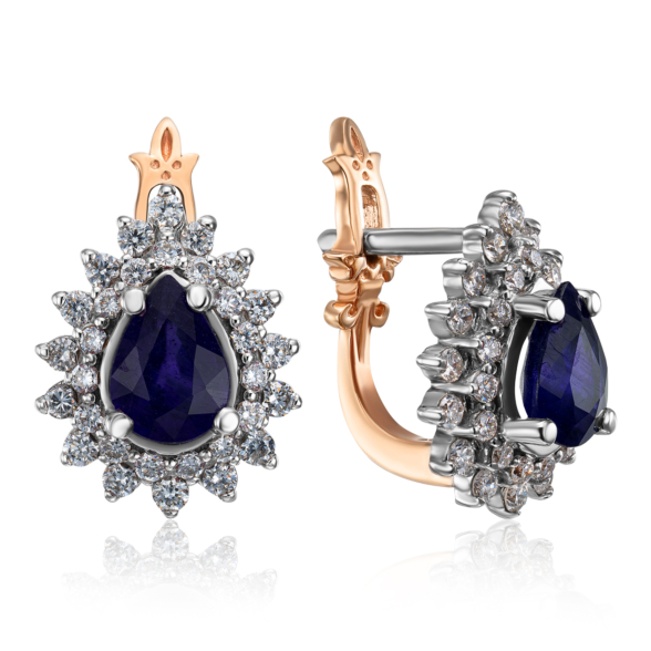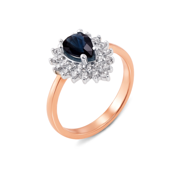 Кольцо из красного золота 585 пробы с сапфиром и бриллиантами