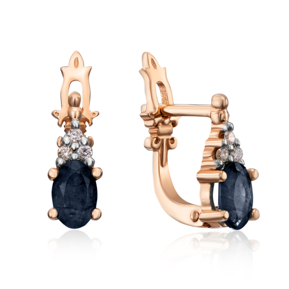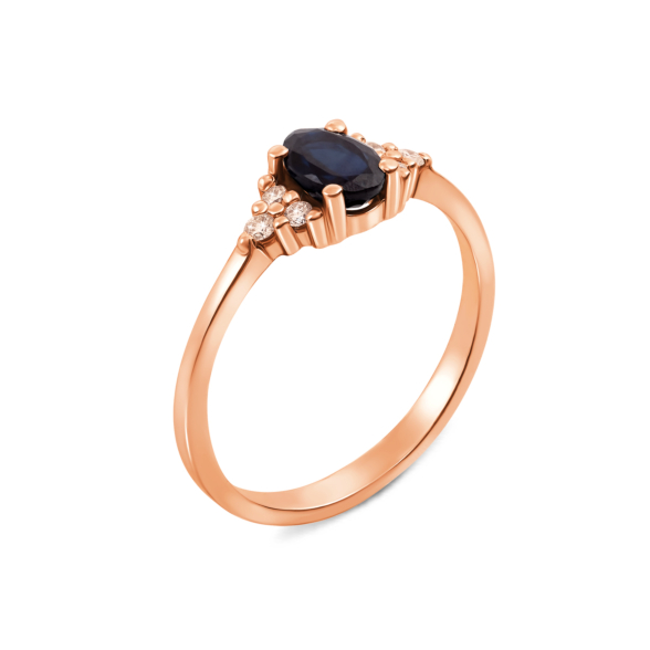Кольцо из красного золота 585 пробы с сапфиром и бриллиантами