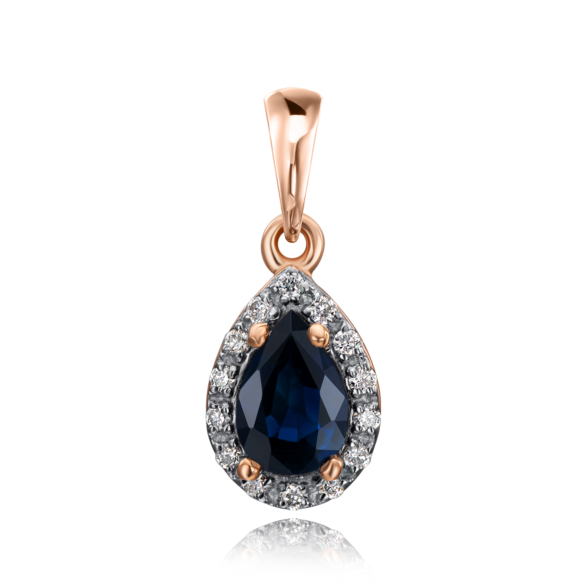 Кольцо из красного золота 585 пробы с сапфиром и бриллиантами