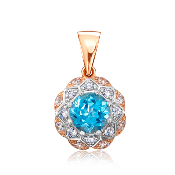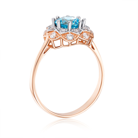 Кольцо из красного золота 585 пробы с голубым swiss топазом фианитами.