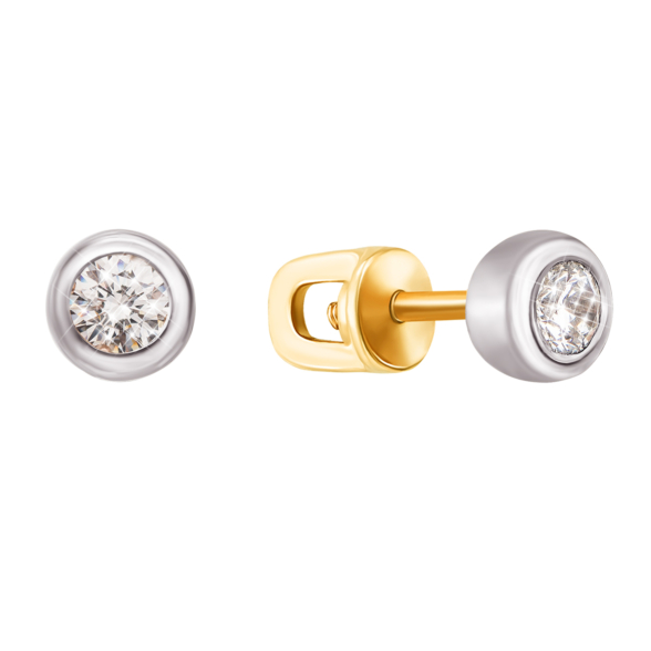 Пуссеты из лимонного золота 585 пробы с фианитами
