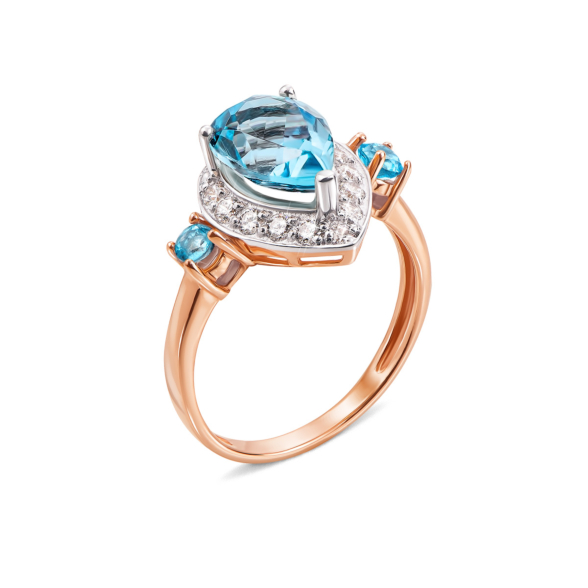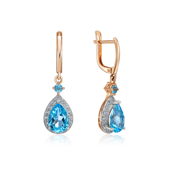 Серьги-подвески из красного золота 585 пробы с топазом swiss и фианитами