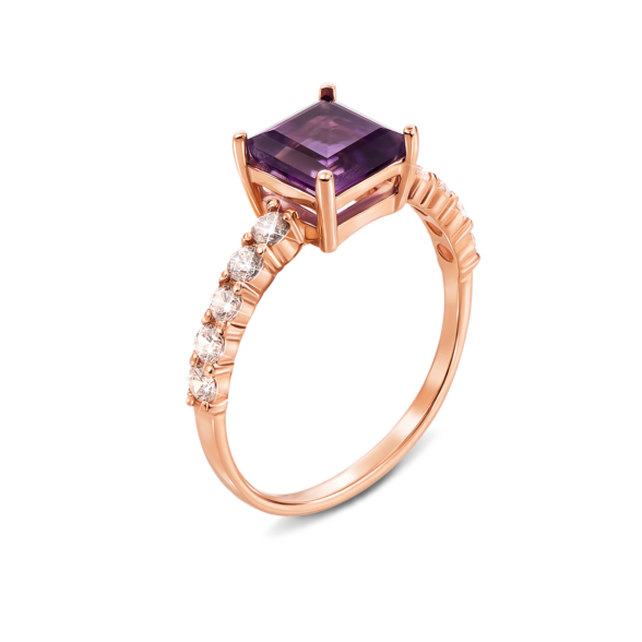 Серьги из красного золота 585 пробы с аметистом и фианитами
