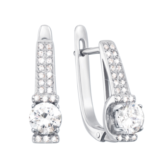 Оригинальный дизайн золотых сережек, украшенных россыпью небольших фианитов и крупным камнем, привлекает внимание с первого взгляда. Золотые серьги в оригинальном исполнении подчеркнут ваш изысканный вкус и будут уместны в любой ситуации.