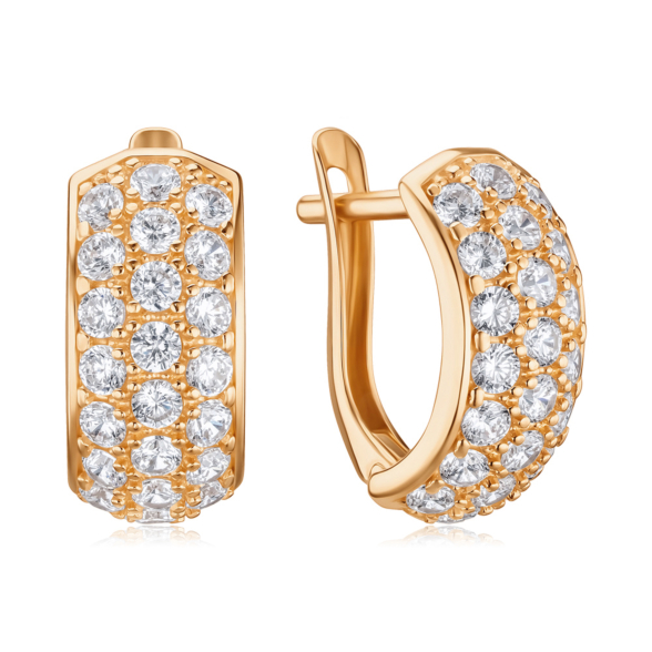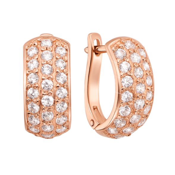Серьги из красного золота 585 пробы, декорированные прозрачными фианитами – отличный вариант для делового или элегантного вечернего наряда. Английская застежка, является надежным видом крепления и очень лаконично смотрится в этой модели.