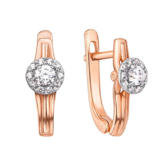 Серьги из красного золота 585 пробы с фианитами