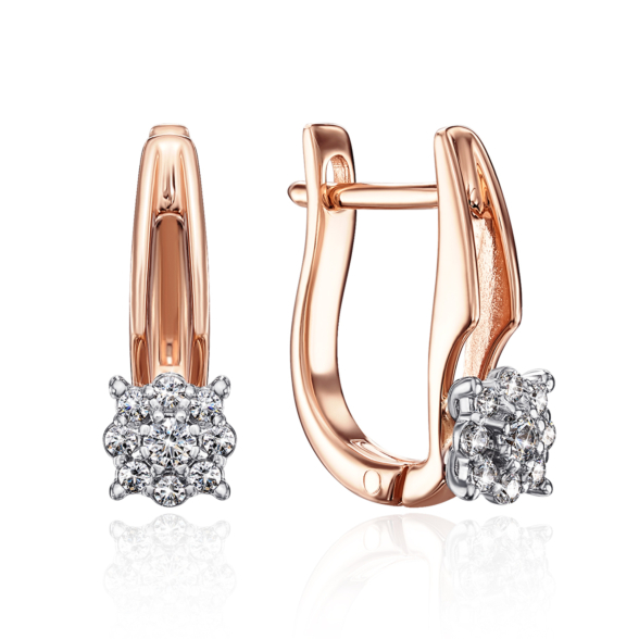 Серьги из комбинированного золота 585 пробы с фианитами S.