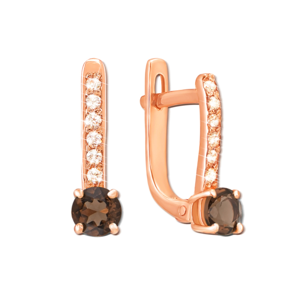Серьги из красного золота 585 пробы с раухтопазом и фианитами