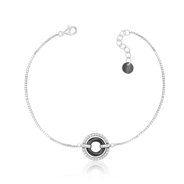 Срібний браслет з керамікою та фіанітами. Артикул SB1278-B-B/12/1