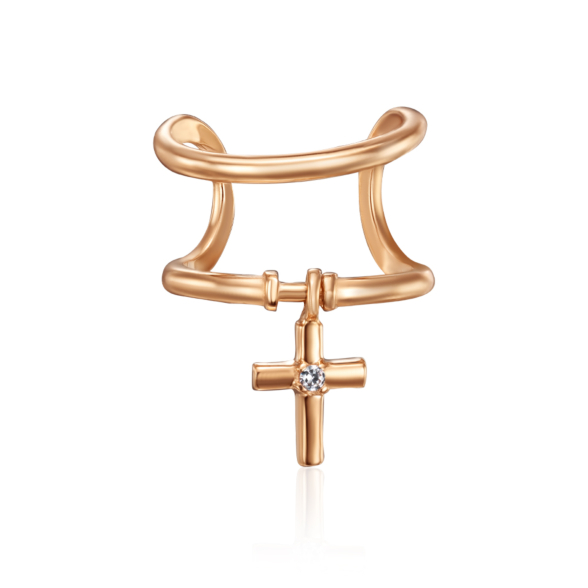 Золота сережка-кафа з фіанітом. Артикул 23352/01/0/1
