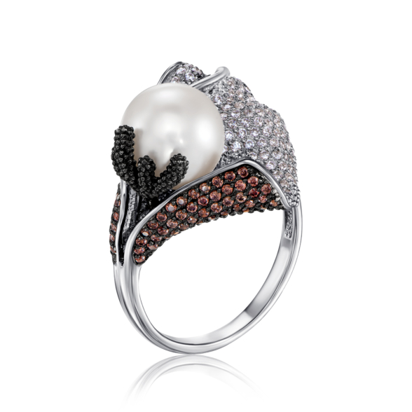 Звичайна ціна 126 682 грн Спеціальна ціна 72 209 грн Золота каблучка з перлиною і фіанітами. Артикул 13034/б ч