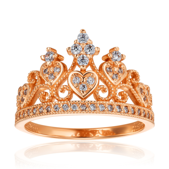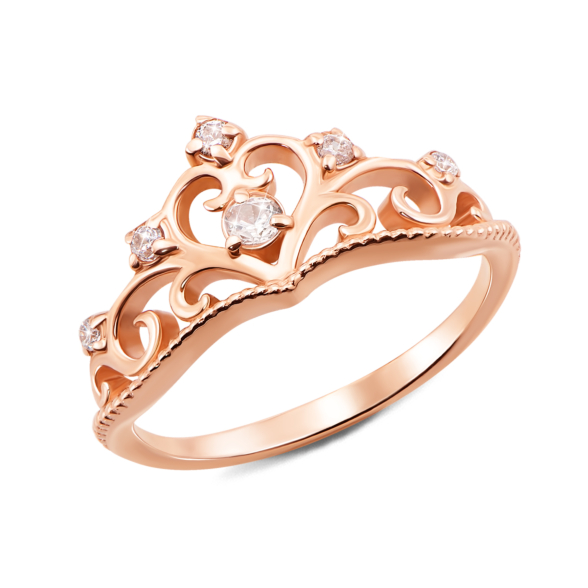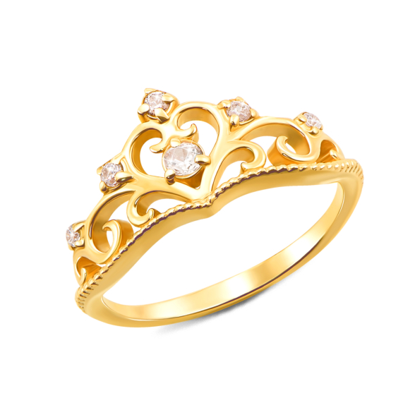 Золота каблучка «Корона» з фіанітами. Артикул 13127/01/0/62