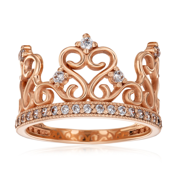 Золота каблучка «Корона» з фіанітами. Артикул 11954