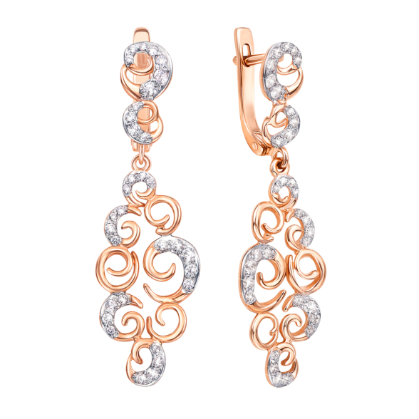 Звичайна ціна 69 099 грн Спеціальна ціна 39 386 грн Золоті сережки-підвіски з фіанітами. Артикул 21534
