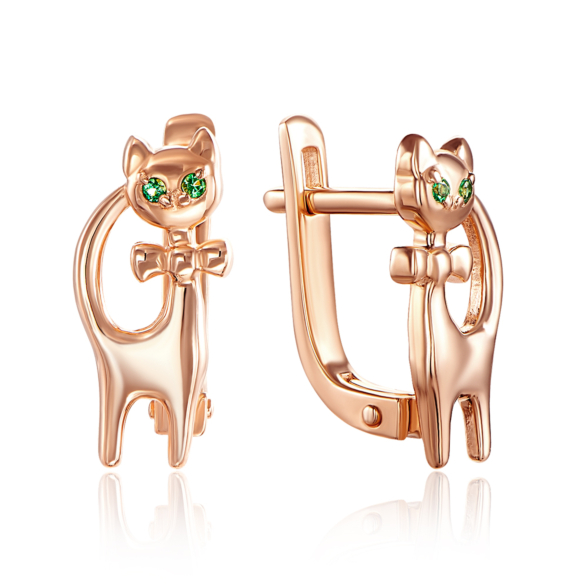 Золоті сережки «Котики» з фіанітами. Артикул 21868/01/0/10
