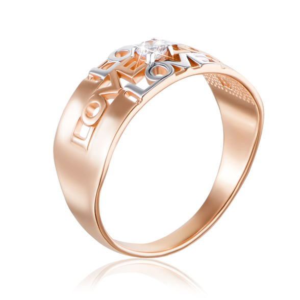 Золота каблучка «Love» з фіанітом. Артикул 13212/01/1/28