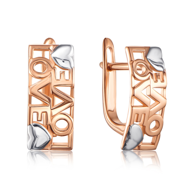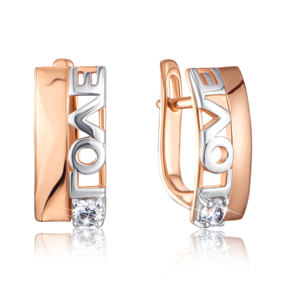 Золоті сережки «Love» з фіанітом. Артикул 21857/01/1/28