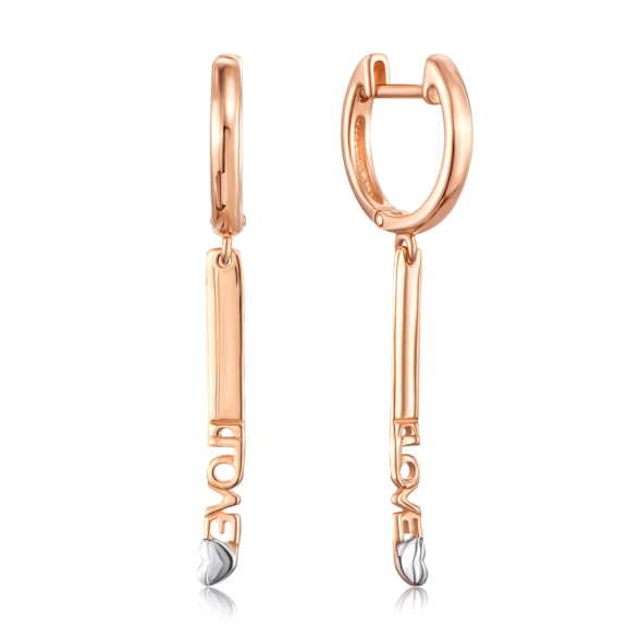 Золоті сережки-підвіски «Love» без вставки. Артикул 21856/01/1