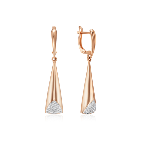 Звичайна ціна 30 621 грн Спеціальна ціна 17 454 грн Золоті сережки-підвіски з фіанітами. Артикул 23683/01/1/1