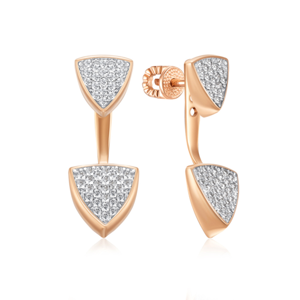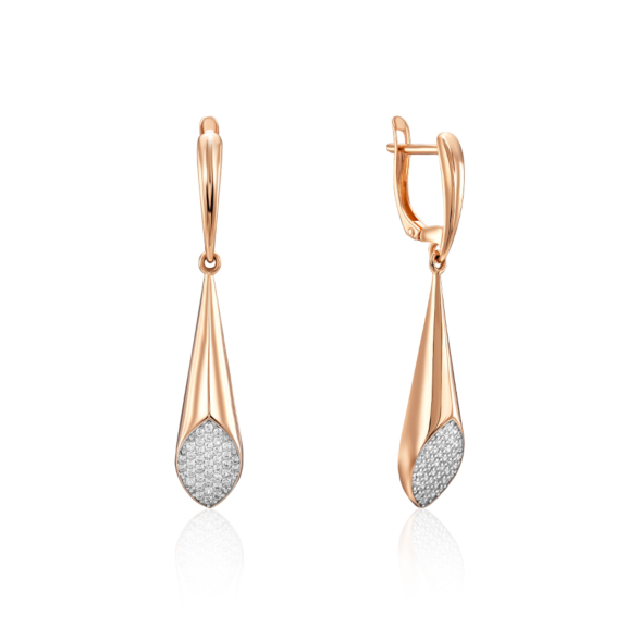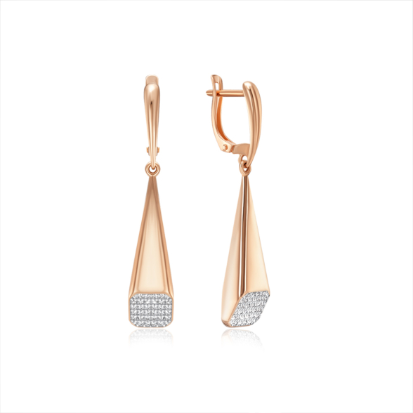 Звичайна ціна 34 549 грн Спеціальна ціна 21 420 грн Золоті сережки-підвіски з фіанітами. Артикул 23684/01/1/1