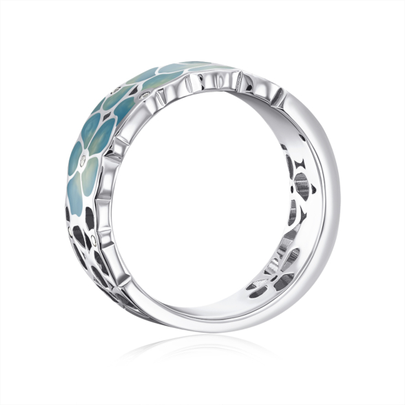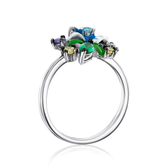 Срібна каблучка з емаллю та фіанітами. Артикул 12039RA2-R/12/3468