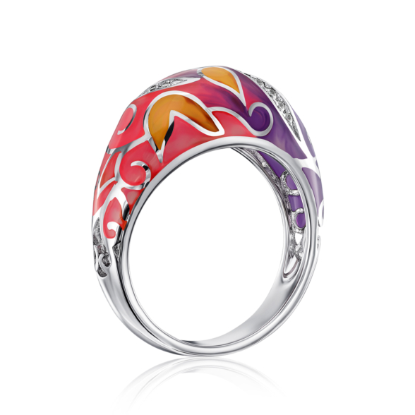 Срібна каблучка з емаллю та фіанітами. Артикул 12037RA3-R/12/1181