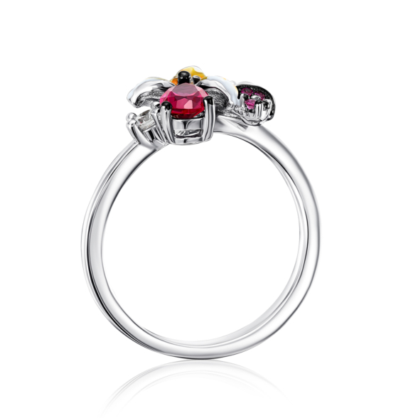 Срібна каблучка з емаллю та рубіном. Артикул 11015RA1-R/12/7510