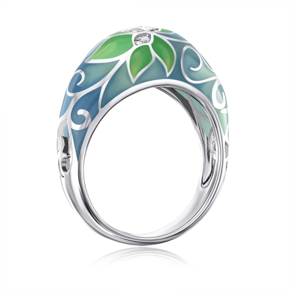 Срібна каблучка з емаллю та фіанітами. Артикул 12057RA2-R/12/3490