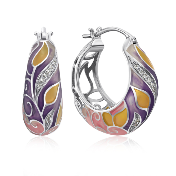Срібні сережки з емаллю та фіанітами. Артикул 12057EA2-E/12/3490