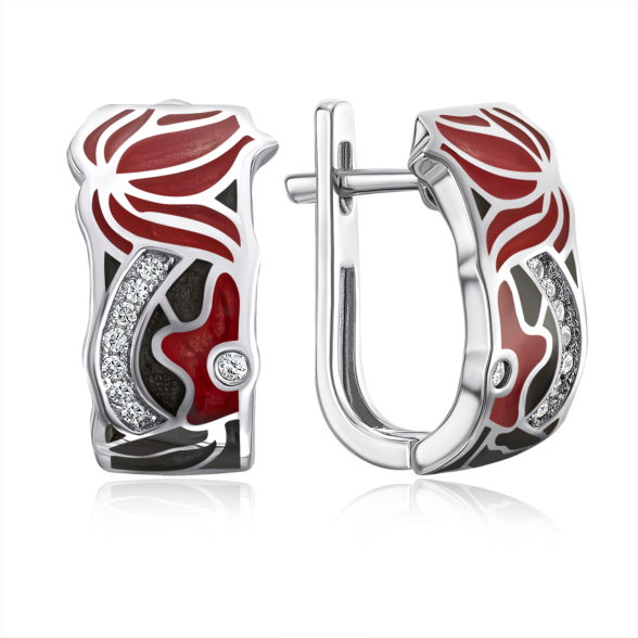 Срібні сережки з емаллю та фіанітами. Артикул 12039EA2-E/12/3468