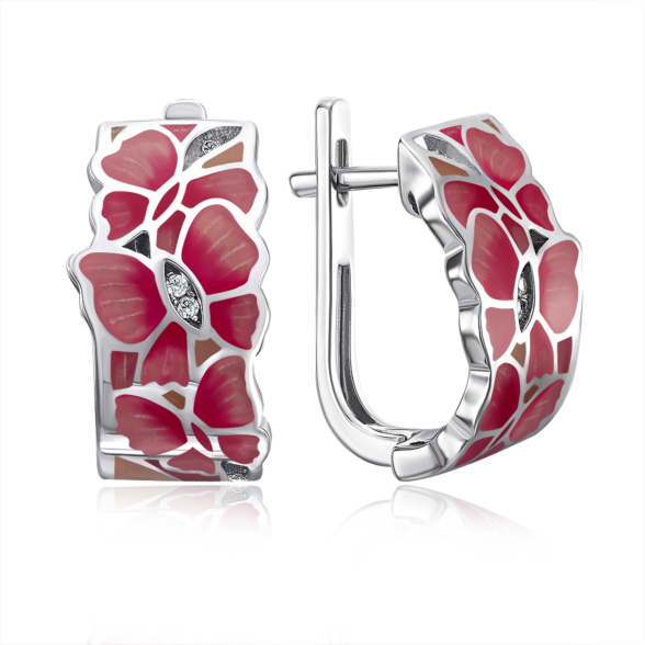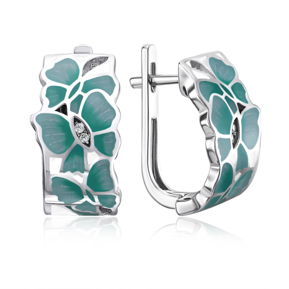 Срібні сережки з емаллю та фіанітами. Артикул 12057EA4-E/12/2285