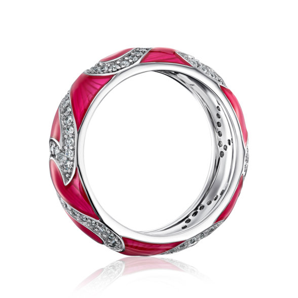 Срібна каблучка з емаллю та фіанітами. Артикул 12058RA1-R/12/3543