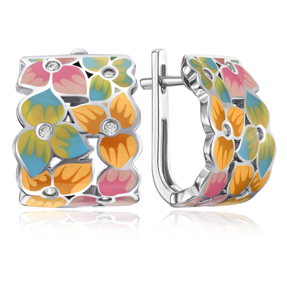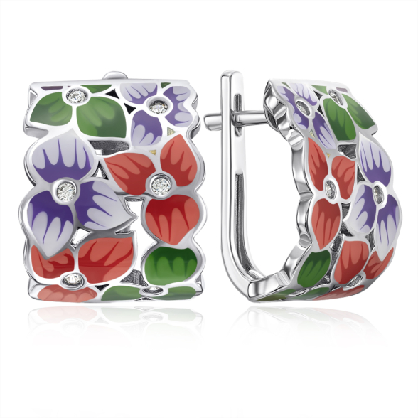 Срібні сережки з емаллю та фіанітами. Артикул 12058EA1-E/12/3469
