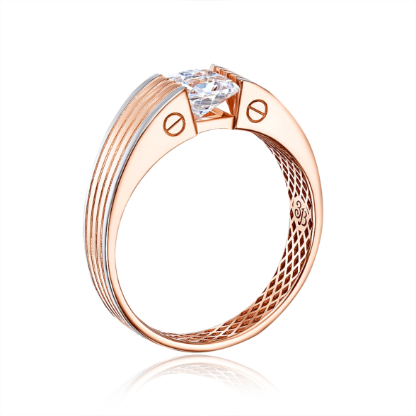 Золота печатка з фіанітами S. Артикул 19150/01/1/1063