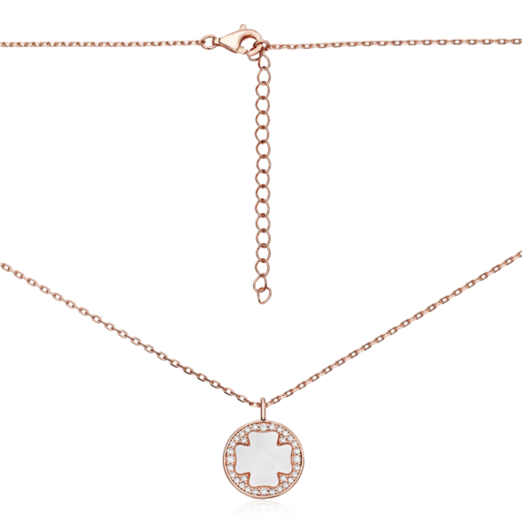 Срібне позолочене кольє з фіанітами та перламутром. Артикул HC-1789-ROSE-K/17/4510