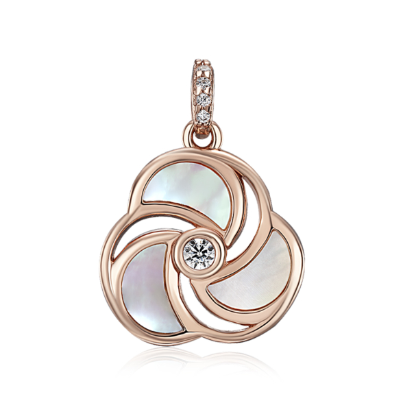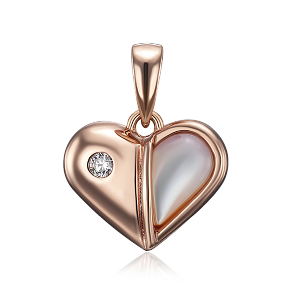 Срібна позолочена підвіска з перламутром та фіанітами. Артикул HJP-847-ROSE-P/17/1090