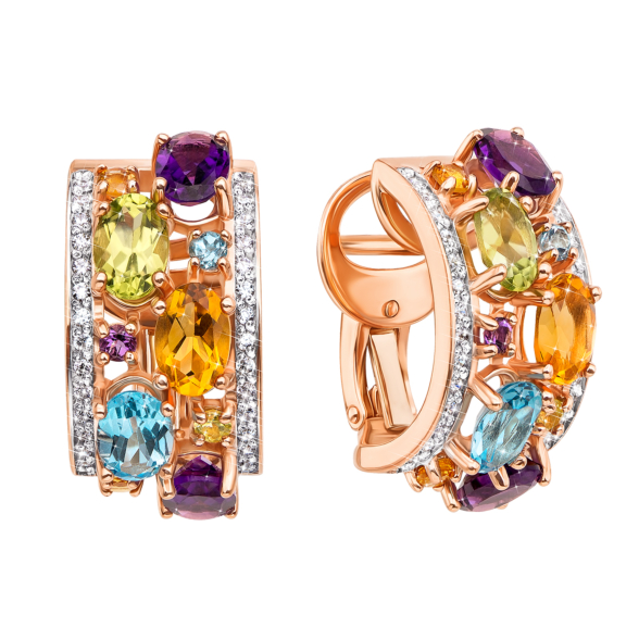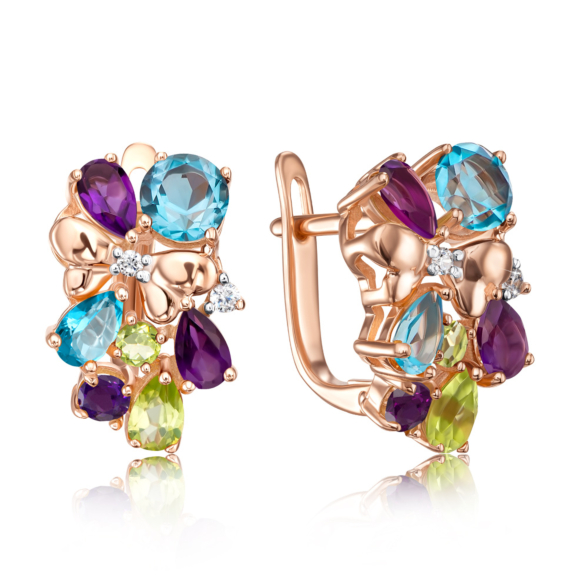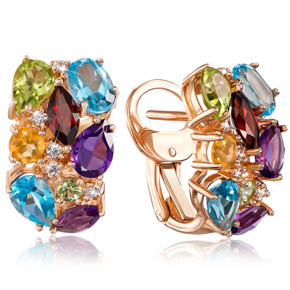 Золоті сережки з міксом напівдорогоцінного каміння (540026/01/0/5613)