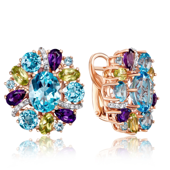 Золоті сережки з міксом напівдорогоцінного каміння. Артикул 540032/01/1/5546