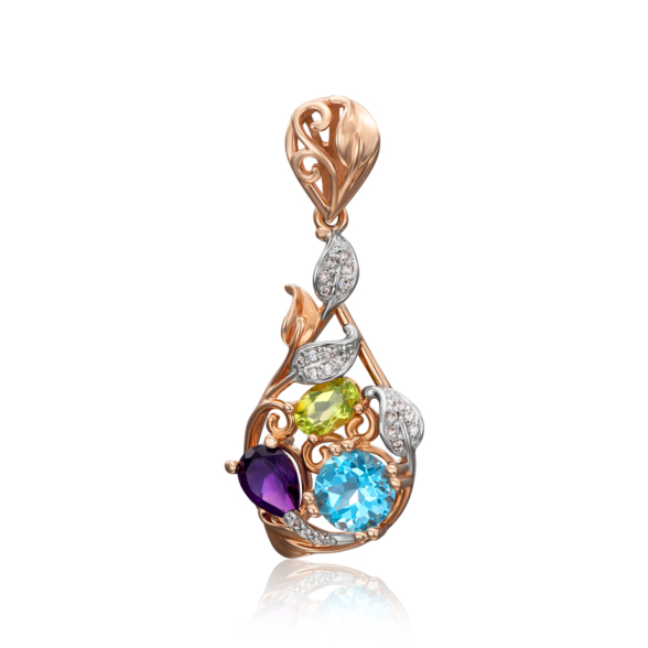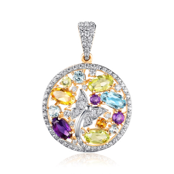 Золота підвіска з міксом напівдорогоцінного каміння. Артикул 550050/01/1/5387