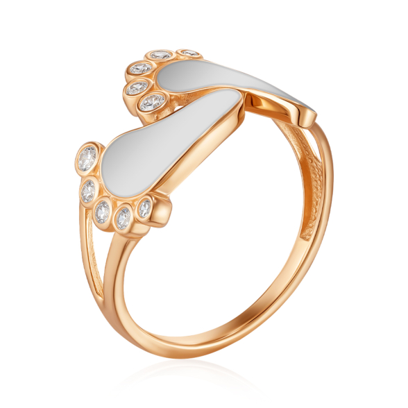 Золота каблучка Ніжки-долоньки з білою емаллю 17139/01/0/21295