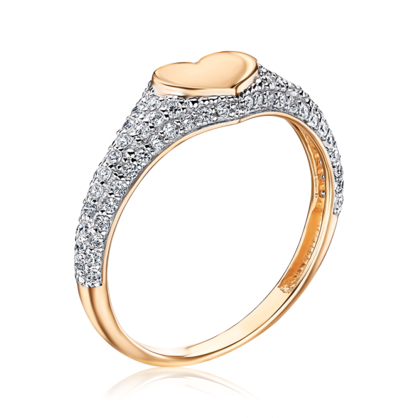 Золота каблучка Серце з фіанітами 17129/01/1/323