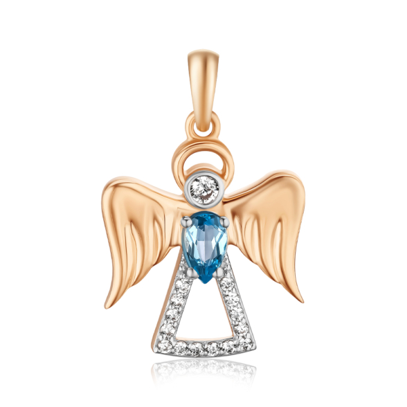 Звичайна ціна 16 639 грн Спеціальна ціна 11 315 грн Золота підвіска "Янгол" з топазом та фіанітами 550130/01/1/16176