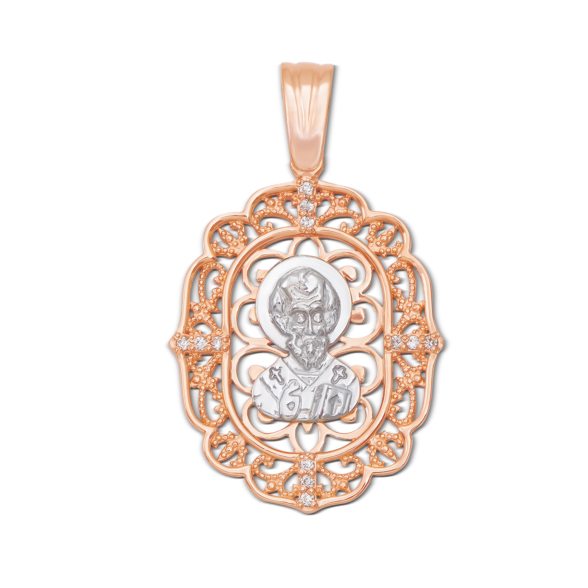 Звичайна ціна 15 715 грн Спеціальна ціна 8 958 грн "Золота підвіска-іконка ""Св. Миколай Чудотворець"" з фіанітами. Артикул 31110/1"