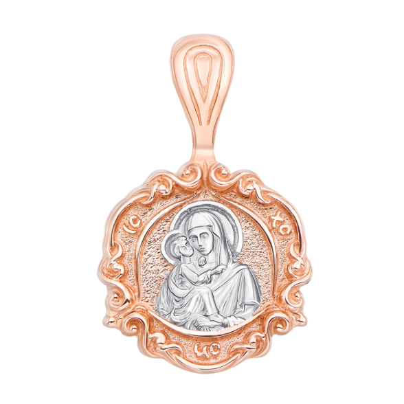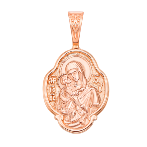 Звичайна ціна 62 312 грн Спеціальна ціна 35 518 грн Золота підвіска-ікона Божої Матері «Володимирська». Артикул 31514/1